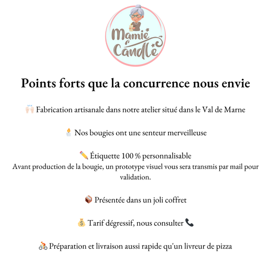 Avant la production, un visuel de votre bougie vous sera envoyé par email pour validation.