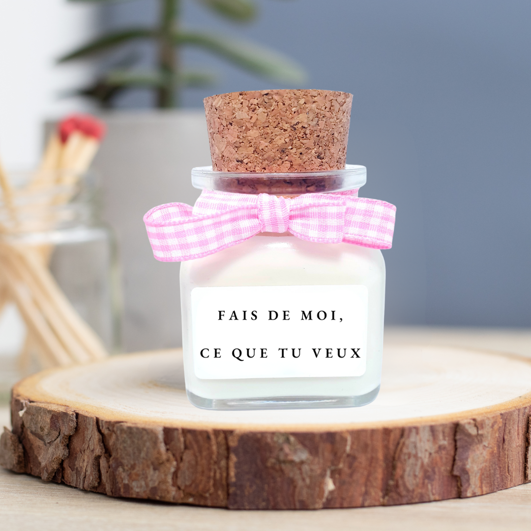 Pot en verre 120 ml (90 g de cire) — H : 8 cm / Ø : 5,6 cm — Environ 25 h de combustion
